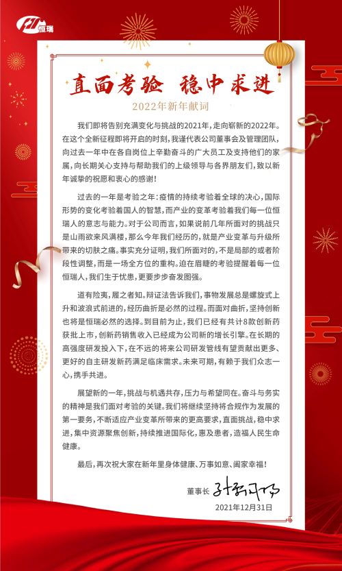 直面考验 稳中求进 | 恒瑞医药2022年新年献词