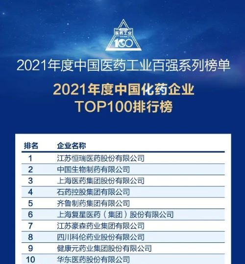 7月12日晚,正在举行的2022米思会(中国医药健康产业共生大会)上,发布了“2021年度中国医药工业百强系列榜单”。恒瑞医药以扎实的创新研发实力和稳健的市场运营能力,再次蝉联“中国化药企业TOP100排行榜”榜首。