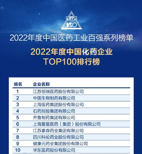 佳音频传!恒瑞医药再次蝉联中国化药企业百强榜首