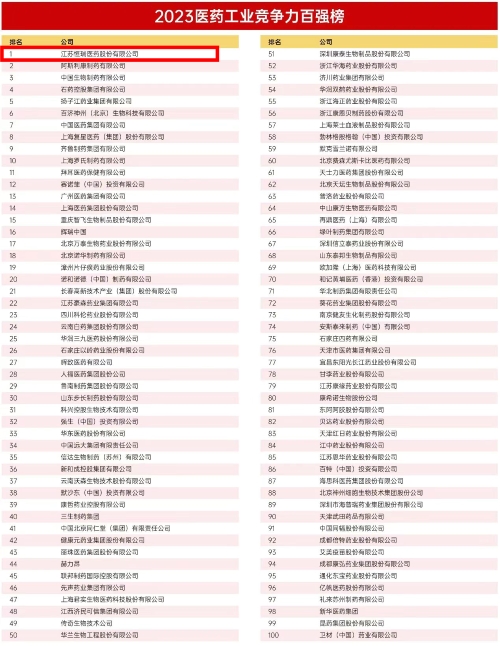 2023医药工业竞争力百强榜发布,恒瑞医药位列榜首