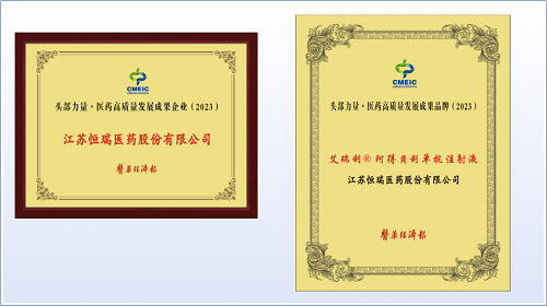 恒瑞医药及创新药艾瑞利®荣膺“头部力量·中国医药高质量发展成果”企业奖、品牌奖
