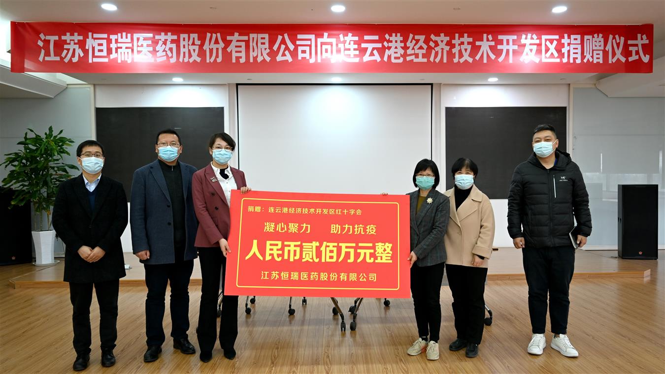 2022年3月19日,恒瑞医药向连云港市经济技术开发区红十字会捐赠200万元专项资金,用于支持全市疫情防控工作